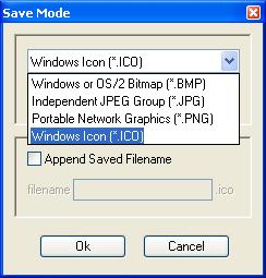 Jika tidak ingin menyimpannya dalam bentuk ICO, anda juga masih punya pilihan, ingin menyimpannya dalam format lain seperti JPG, BMP atau PNG. Gunakan menu Options, kemudian Save Mode untuk melakukan perubahan tersebut.